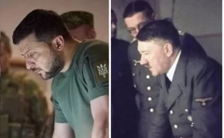 Впрочем, Зеленский, судя по всему, перенял от Гитлера не только "метод фюрера" по удержанию позиций, но и отношение к собственному народу. Гитлер, как известно, незадолго до самоубийства заявил, что поскольку немецкий народ оказался недостойным своего фюрера, он (народ) должен погибнуть на развалинах рейха. Даже, если Зеленского найдут на полу его кабинета с дырой в голове и пистолетом в руке, я всё равно не поверю, что он самоубился, а не ему помогли уйти из жизни "героически", для создания легенды о президенте, до конца защищавшем Украину. Но народ, оказавшийся "недостойным" своего клоуна, Зеленский явно готов угробить. У Владимира Александровича в принципе потрясающе много общего с Адольфом Алоизовичем.