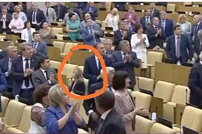 Не встала с места только крымский депутат Наталья Поклонская. Она осталась сидеть на своем кресле, пока остальные аплодировали.